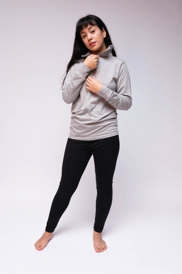 This stylish full sleeves Polo t-shirt with a neck zipper is ideal for your yoga sessions on that slightly colder day.